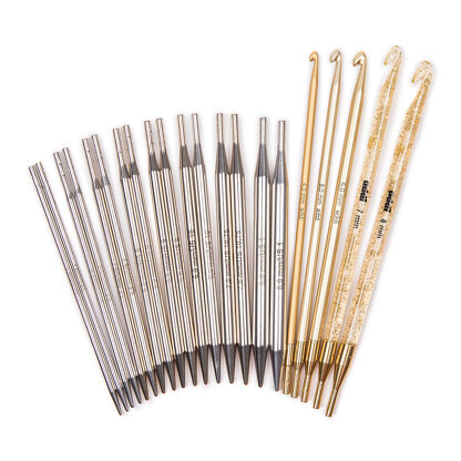 Addi has joined forces with German handicrafter extraordinaire, Veronika Hug and her Woolly Hugs label to create this set of 13 interchangeable needle and Tunisian hook tips. Made of durable, tapered metal, the tips are presented in a smart, slim line case. A perfect gift idea for all crafters.