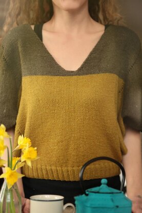 Yarn: Quince and Co. Tern, fingering (sample in Kelp and Barnacle) Yardage: MC 660 (800, 870) yards. CC 440 (530, 580) yards Gauge: 2” = 12 sts and 15 rows Needles: US 4 & 6 24” circulars Sizes: S (M, L) Skills: Cast on, Knit, Purl, Yarn Over (YO), slip slip knit (SSK), Knit 2 together (K2tog), 3 needle bind off Notions: tapestry needle, 6 stitch markers and extra needle for 3 needle bind off
