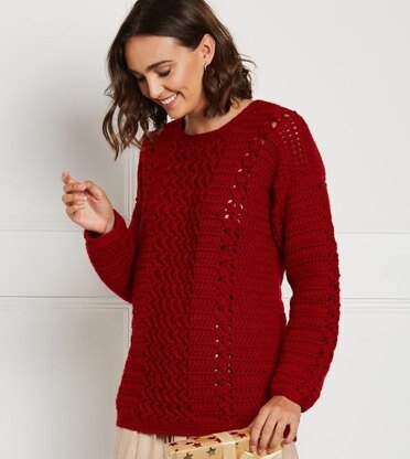 The love, life, enthusiasm, cheerfulness, the quickness and the sharpness: this sweater has it all, just like the color red itself. The middle of the front panel, made with a crossed stitch, looks like small flames that are blowing upwards. Two delicate lace stripes on the sides of the panel make this look complete. The back and sleeves are crocheted with a simple double crochet, with thesame stripe motif on the middle of the sleeves. There is also an option for making a spencer included in the pattern.