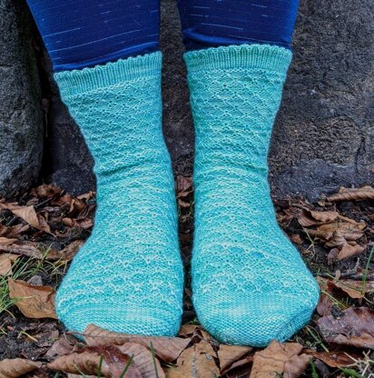 Alba is designed for maximum visual impact with minimal effort (meaning…no purling!). Enjoy a relaxing knit and see the pattern magically revealed when you turn the sock right-side out at the end! All of the reverse stockinette patterning with none (well, very few) of the purls.