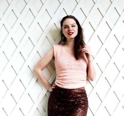 With its simple but intriguing construction, you'll quickly knit this piece and love every moment. Constructed in pieces, you'll knit the waistband first and attach it before picking up the rest of the top to knit in the round.