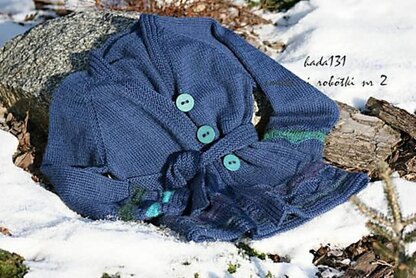 Alexandra is a child’s cardigan with pleated hem and cuffs. Giant buttons in contrasting colors and a belt makes it interesting and fashionable. It is a top-down raglan, worked in one piece without seams.Cardigan is designed with 3” of positive ease so it can be comfortably worn on top of other clothes.