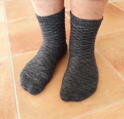 I used a motif pattern similar to the one I created for the Algebra tee. This motif pattern is worked in stockinette stitch and reverse stockinette stitch. It makes these socks very addictive to work and very comfortable to wear.
