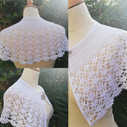 The Alice cape is the perfect accessory to wear over a Communion or flower girl dress. Crocheted in 4ply cotton the cape is crocheted in one piece.