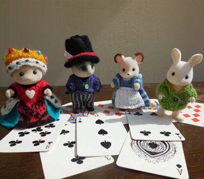 In 2015, Britain celebrated the centenary of the story of Alice in Wonderland written by Lewis Carrol and illustrated by Sir John Tenniel. My pattern draws on the original Tenniel illustrations and I have depicted four of the main characters, dressing Sylvanian Families and Calico Critters in their style.