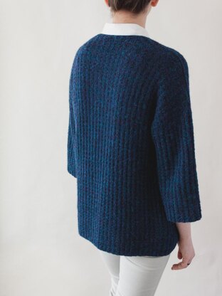 Alinea is a minimal, oversized drop shoulder cardigan with a lot of straight lines and little shaping. With set-in pockets, no front closures and wide, ¾ length sleeves, it’s a practical and easy to wear year-round piece that can be dressed up or down. Shaping at the back of the neckband and short rows at the shoulders and sleeve caps give the cardigan a more refined fit.