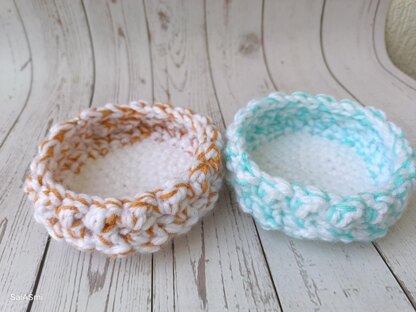 All Rounded Up is a part of a series of Shaped basket patterns for Storage of knick-knacks. The pattern is easily adaptable to any thick yarn, and the sturdiness of the basket can be achieved by any yarn/ Tape yarn/ T-shirt Yarn of choice with a 7-8mm hook.