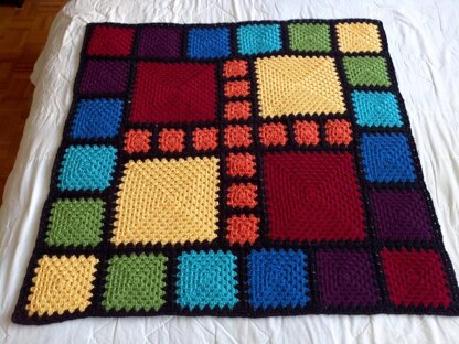 The idea behind the All Squared Away patterns is to take the traditional granny square pattern and make it sing! These patterns are designed to use squares of different sizes, which makes them ideal for using up scraps; while the joining method used cuts down on the number of ends you need to weave in.