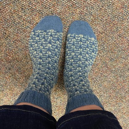 Create handspun socks that are durable and resistant to abrasion yet soft and elastic. This is the author's version of the pattern & accompanying article “Nature’s Nylon: Natural Alternatives for Stronger Socks” published in the Winter 2022 issue of Spin Off Magazine.