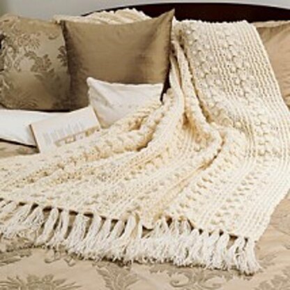 Leisure Arts Alluring Fisherman Afghan Crochet ePattern- This cozy afghan features panels of cables outlined with popcorn stitches along each edge. Project can be made using size 4 worsted weight yarn and a US size I-9, 5.5 millimeter, crochet hook. Includes row-by-row instructions and stitch guides. Finished afghan measures approximately 48"x 69". Originally published in the December 2000 issue of Crochet With Heart magazine. 3 page PDF download.