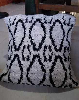 The cushion is crafted using the tapestry crochet technique. The stitches used are only the Double crochet (dc) and the Chain stitch (ch). The graph is read from right to left on all lines.