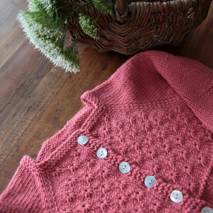 *"Alouette, gentille alouette..."* As sweet as a whimsical children's song, this little cardigan is the prefect addition to a little girl's wardrobe. Straightforward to knit with its top-down construction and pretty stitch pattern, it features lovely details such as the subtle flare at the top of the 3/4 sleeves, which echoes the overall swingy shape.