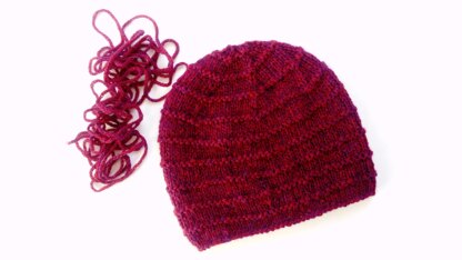 This hat is knitted mostly in stockinette stitch with a purl row at regular intervals that gives it a nice turn. In the pattern I explain how to achieve a jogless round, it's very easy! It's a bit slouchy, so anyone can see the spirally top when you (or someone else) are wearing it. The colour is really special, with a base of berry colour and hints of purple that melt together to create a beautiful shade that changes according to the light. I used a yarn with 30% alpaca, which makes it very soft and warm but not too hot as it would be in pure alpaca.