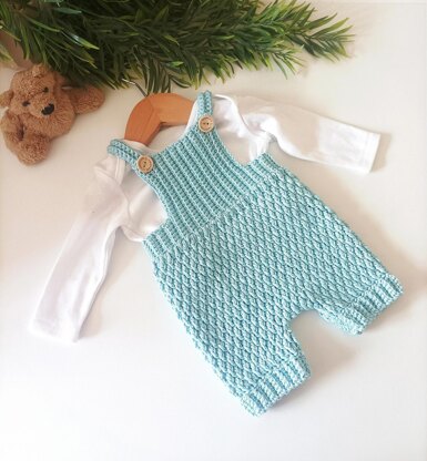 These cute overalls are made from the top down, with a single crochet ribbed stitch top and alpine stitch body.
