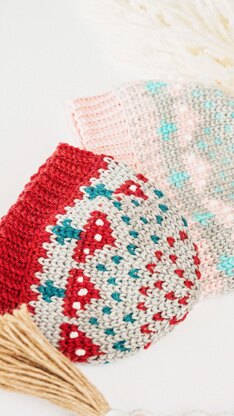 The Mushroom Beanie Hat is worked in rounds from bottom-up, in fair isle crochet.