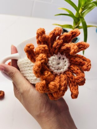 This Cup cozy's warm, amber hue evokes the glow of a golden sunset, bringing a touch of warmth and sophistication to your daily coffee or tea ritual. Perfect for keeping your beverage warm and your hands cool, the Amber Bloom Cup Cozy is not only functional but also a beautiful statement piece that adds a cheerful and stylish flair to any cup. It is made using a simple Tunisian Stitch. Step-by-step written instructions included.