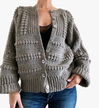 Perfect Cardigan/ Jacket Project fun to make and comfy to wear! A lot of photos and detailed description will make it easy to follow! Pattern includes links to videos as well! Perfect project for beginners! Skill level: easy Sizes: XS S M L XL * Easy to adjust to any size you want! The pattern is written in STANDARD AMERICAN TERMS! Language - English You will need: • Crochet hook: 5 mm (US H-8) • Yarn weight: Aran (8 wpi) XS – 20 balls, totally 1000 grams (36 oz) / 1400 m (1540 yards) S – 20 balls, totally 1000 grams (36 oz) / 1400 m (1540 yards) M – 21 balls, totally 1050 grams (37,8 oz) / 1470 m (1617 yards) L – 22 balls, totally 1100 grams (39,6 oz) / 1540 m (1694 yards) XL – 24 balls, totally 1200 grams (43,2 oz) / 1680 m (1848 yards) (I USED DROPS ALASKA) • 8 buttons about 20 mm (0,8”) • Stitch markers
