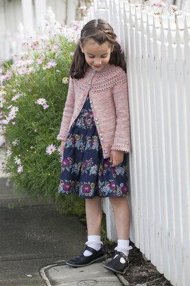 Simple, classic and feminine, Amelia-Jane features subtle vintage details like picot hems and double buttons to make your little girl feel as pretty as can be. Knit top down with a circular yoke, Amelia-Jane is completely seamless for a more modern take on classic designs. With the sun in her hair and not a care on her mind she will be a pretty picture splashing in puddles, chasing butterflies and picking daisies.
