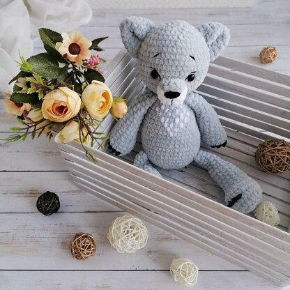 This PDF crochet wolf pattern includes 19 pages with step by step instructions in English (US terms) and 55 pictures of process so you can crochet your own wolf.