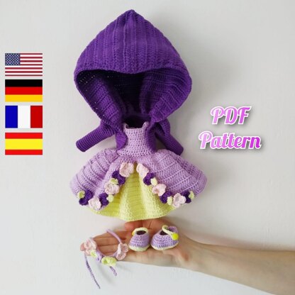 Amigurumi clothes pattern for a doll 30 cm (11,8 inch) in English, Deutsch, Français, Spanish (Español)