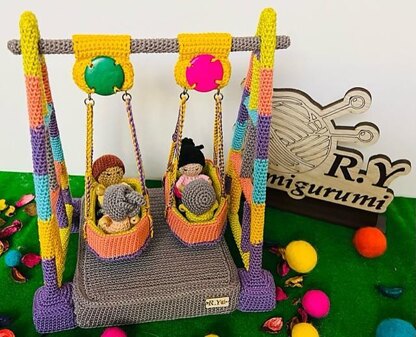Hello our friends and amigurumi lovers around the world, Eid (Feast) brings us joy and happiness every year, a kind of joy nothing else could bring. Happy hearts meet and enjoy greeting each other and kids just play around with clouds of happiness above their heads. And what could be more joyful than a colorful swing by which they could feel flying with their dreams. Wishing that our new design would bring you the happiness we felt making it and swing away your worries. Happy Eid everyone. Such a beautiful swing will be an amazing gift for a little kid in different occasions special in Eid or used as a decorated item. This pattern is written and designed by Reham Youssef the owner of R.Y amigurumi and please note that it is for your personal used only and it is not allowed to sharing and reselling and reproduce in Internet or any way of published, you are able to sell the product only as you want.
