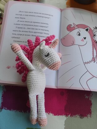 If you use the indicated (or similar) yarn and the hook, your unicorn will be around 15 cm tall.