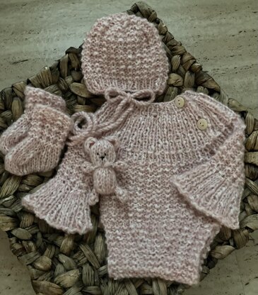 Fits both newborn and 21-22 inch reborn size baby dolls...this is a knit set . This is a Pattern. THIS IS NOT THE FINISHED ITEM