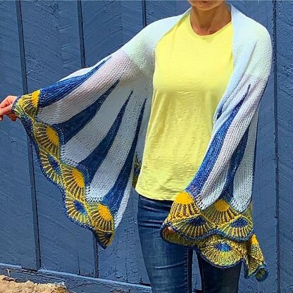 Amun-Ra is semi-circular colorwork shawl. It's knit in two steps.