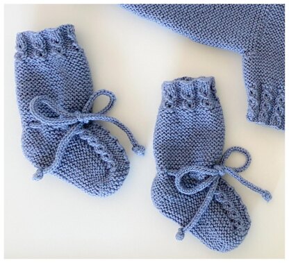 Lovely baby booties for colder weather to warm up little feet on winter days. The pattern comes in three sizes and it is very easy to knit following the detailed instructions.