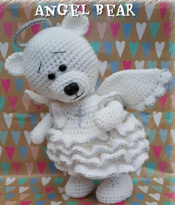We would like to introduce to you ' Angel Bear' she is part of 'The Cuddle Me Collection', she is worked in basic stitches and rounds, is worked in Aran (10PLY Worsted) and DK (8PLY), is written in US terminology and stands at approximately 10" in height.