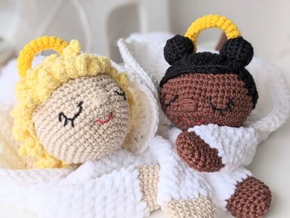 This listing is for amigurumi Angel Comforter pattern, written in USA crochet terms. The PDF file includes patterns for both of the angels pictured