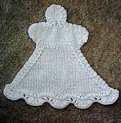 This pattern, believe it or not started as a project from our blind friend. She had problems getting the bottom skirt just right, so she asked us to help. We transformed it to a much easier pattern, and the scallops are still there. She was delighted with the finished results. This is one she wanted us to share with you. It is fairly easy to knit. This uses worsted weight yarns, knitting needles, US # 8. Finished Angel dishcloth is 10 by 11. This makes a nice gift for Holiday gift giving!