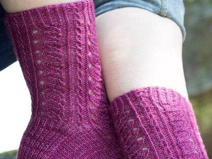 These socks are fairly elastic due to the ribbing and lace. Choose a size closest to your foot measurement. With the premium rock+purl heel treatment, your socks will hug your feet and never twist around your ankles.