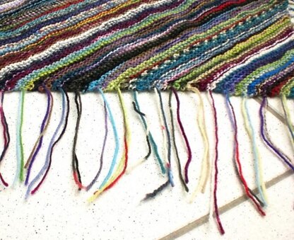 This is the perfect project for everyone who has a bin full of left-over sock yarn. Dive into your stash and knit up this fun, bottom-up shawl with build-in fringe! It is worked in garter stitch, so there are only knit stitches (and some increases) and no purling. Also, there is only one row to remember, so there is no “right” or “wrong” side. Not a single end is woven in because the yarn ends make the fringe! As most of my shawl designs, this one can be worked to any size using any gauge, so it is also possible to work it with a different weight of yarn.