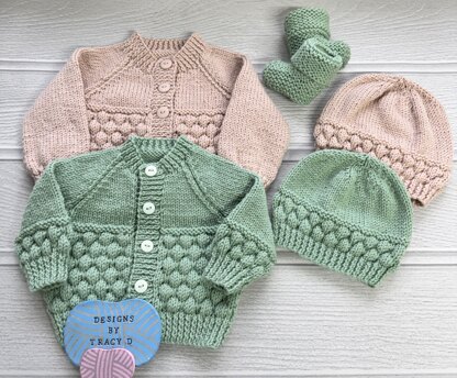 Annabeth Cardigan, Hat & Booties, 16-20 inch chest 0-12mths