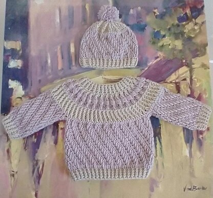 This sweater is crocheted top-down with a round yoke. The body is crocheted in one piece and the sleeves and neck trim are then added. The only sewing required is to sew in your loose ends!