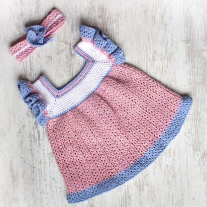 The Annie Dress Set is a combination between cuteness and elegance. This dress was designed to fit easily any baby size from 1 to 18 months, you just need to match the chest size to the pattern and everything else will fall into place. The features on this dress are gorgeous, this crochet dress has cute ruffles on the shoulders and the knee. The bandana is uniquely designed and made in an S twist shape and a ruffled center on the top of the head. I used my favorite color combination, pink, blue and white. You can mix and match with the colors as you wish! I hope you enjoy crocheting this beautiful dress and bandana set and make the best version of it!