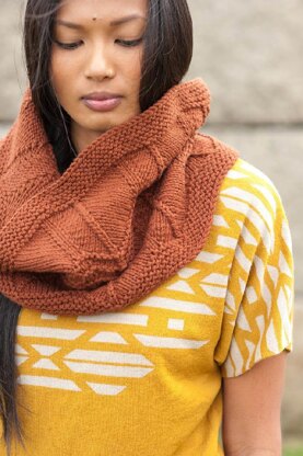 Sometimes a simple chevron pattern can become something fresh and new when viewed through a different lens. This cowl was born of a idle “what if?” moment. What if this traditional, zig-zag pattern wasn’t symmetrical? The modern lines of the Anouk Cowl are the result. Knitted in the round from the bottom up, it’s a quick weekend project with instant wardrobe appeal.
