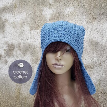 Chunky Anouk Hat - Cat Hat with or without ear-flaps. To make the hat you will need: * yarn: 2-4 skeins of cotton aran worsted (10 ply) yarn, or any yarn which will result in stitch gauge below * crochet hook: 6 mm, or size hook which result in stitch gauge below * 1 moveable stitch marker (or safety pin) * scissors * tapestry needle or small crochet hook size 2 - 3 mm to wave in the ends Stitch Gauge: (10 x 10 cm -> 15 sts x 16 rows) Pattern is written in US standard terms. Skill level - easy. Sizes: from 6M to XL Adult