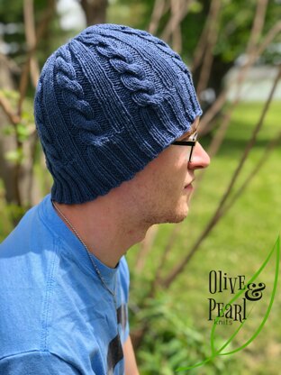 The Anthony hat/beanie is a repeatable pattern of scrumptious cables and ribs. Decreases are then worked in a way to coax the cables to climb to the very top. No gap at the top without cables.
