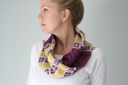 Anthos (Greek for flower) is a Scandinavian-inspired cowl with a lovely floral colorwork pattern from Mary Jane Mucklestone’s 150 Scandinavian Motifs. The cowl is knit in the round from end to end and twisted before the two ends are joined. Solid blocks of color break up the flower sections to give you a little break from the stranded colorwork and to create a fun color-and-pattern blocked look. While slightly more involved than Cruces, Flores’ colorwork is still simple and easy to memorize – and it gives you a pop of Scandinavian style without going overboard.