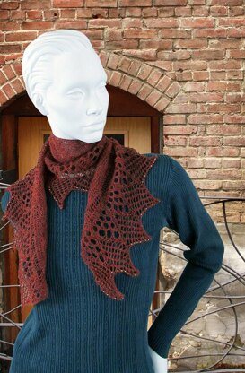 The shawlette measures 46" (117 cm) long by 9" (23 cm) wide. The cowl measures 37 1/2" (95.5 cm) circumference by 5" (12.5 cm) long.