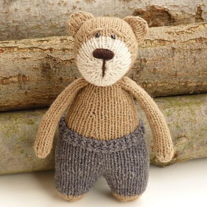 Anton Bear is an animal toy pattern for all those knitters, who feel good in "in the round" knitting with DPNs. It is almost whole knitted in the round (only a belt is worked back and forth). Anton Bear consists of following parts: head, ears, body&legs (as one piece of work), arms and belt.
