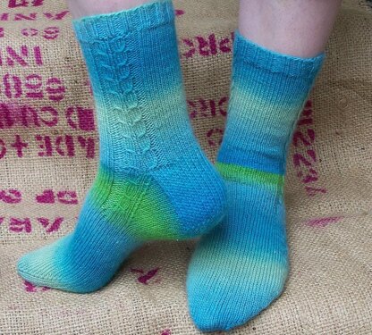 Anybody's sock is a sock to suit Anybody! Choose yarn to make it gender specific and the design will please anybody! The written pattern is simple enough and detailed enough for a sock newbie and the finished product is attractive enough to make a knitter proud. I’ve designed around the tactile sensitive in my family (Asperger’s). You have to peel them off the ceiling if there’s a bump in their shoes! So, these socks have no pattern or seams below the shoe line that would set off alarm bells among the sensitive foot set. I’m sure Asperger’s people are not the only ones who like a smooth sock line.