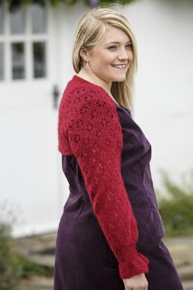 The Aowena Shrug is a pretty, lightweight shoulder cover, with a simple and effective lace pattern for a little added glamour. Worked up in luxurious Cumulus, a Baby Suri Alpaca and Mulberry Silk blend from Fyberspates, Aowena comes in 4 sizes: S, M, L and XL.
