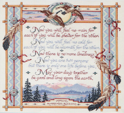 By Sandy Orton. This wedding blessing offers the plainly spoken, yet provocative, caring insight of life together. Wise in the ways of life, love and heritage, this blessing will certainly be admired by newlyweds. The text reads" Now you will feel no rain for each of you will be shelter for the other. Now you will feel no cold for each of you will be warmth for the other. Now there is no more loneliness. Now you are two persons but there is only one life before you. May your days together be good and long upon the earth."