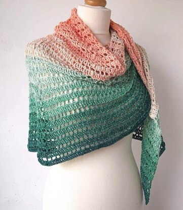 Pattern is for a Semi-circle Crochet Shawl. It perfectly drapes around your neck and shoulders and is an easy relaxing pattern using basic stitches. The half circle shape of this crochet shawl is very versatile, and the open lace stitches makes the design light and easy to wear. Crocheted from the top down with an easy to remember increase sequence. Handy printable stitch count chart included to keep you on track.