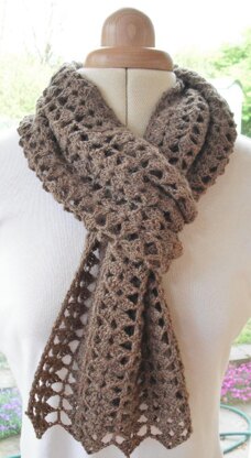 The 4th in my collection of 12 scarves for 2014; April weather is unpredictable here in the UK. I wanted to use a 4 ply yarn for this month’s design but decided it still had to be warm enough for the cold spells of weather. So I combined my favourite ‘diamonds’ with a shell pattern to give more density to the fabric of the scarf. I was quite pleased with the combination of stitches, I hope you like them too. As made to the pattern the scarf measures 16½cm (6½”) wide by 170cm (67”) long when blocked. The pattern is written in English and US crochet terms, and is charted