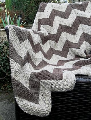 Materials. Aran/Worsted weight Yarn. Colour A. Biscuit: 400 Grams. 816 Metres. 892 Yards. Colour B. Brown: 400 Grams. 816 Metres. 892 Yards. 1 Pair 4mm (UK8 – US6) Knitting Needles. 1 Tapestry Needle. NB: Each Chevron requires approx 18 Metres. 20 Yards of Yarn, in each colour.