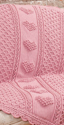 Aran Hearts Throw in Red Heart Soft - LW2947EN - Downloadable PDF